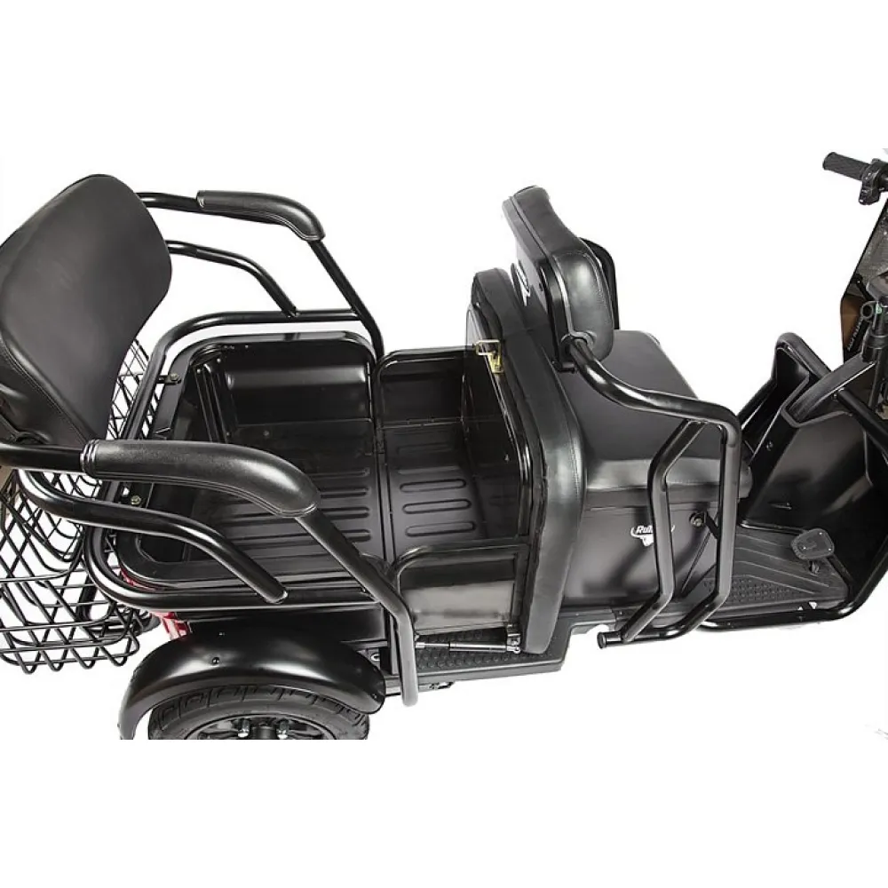 Модель оснащена новым электромотором, способным развить скорость до 25 км/час и проехать на одной подзарядке до 30 км пути. При этом следует знать тяговое АКБ в комплектацию не входит. Мягкие комфортные сиденья напоминают диван, изготовлены из премиум материала, готовым показать пассажирам высокий уровень комфорта. При необходимости водитель может трансформировать заднее сиденье превратив его в грузовой отсек для транспортировки вещей.
