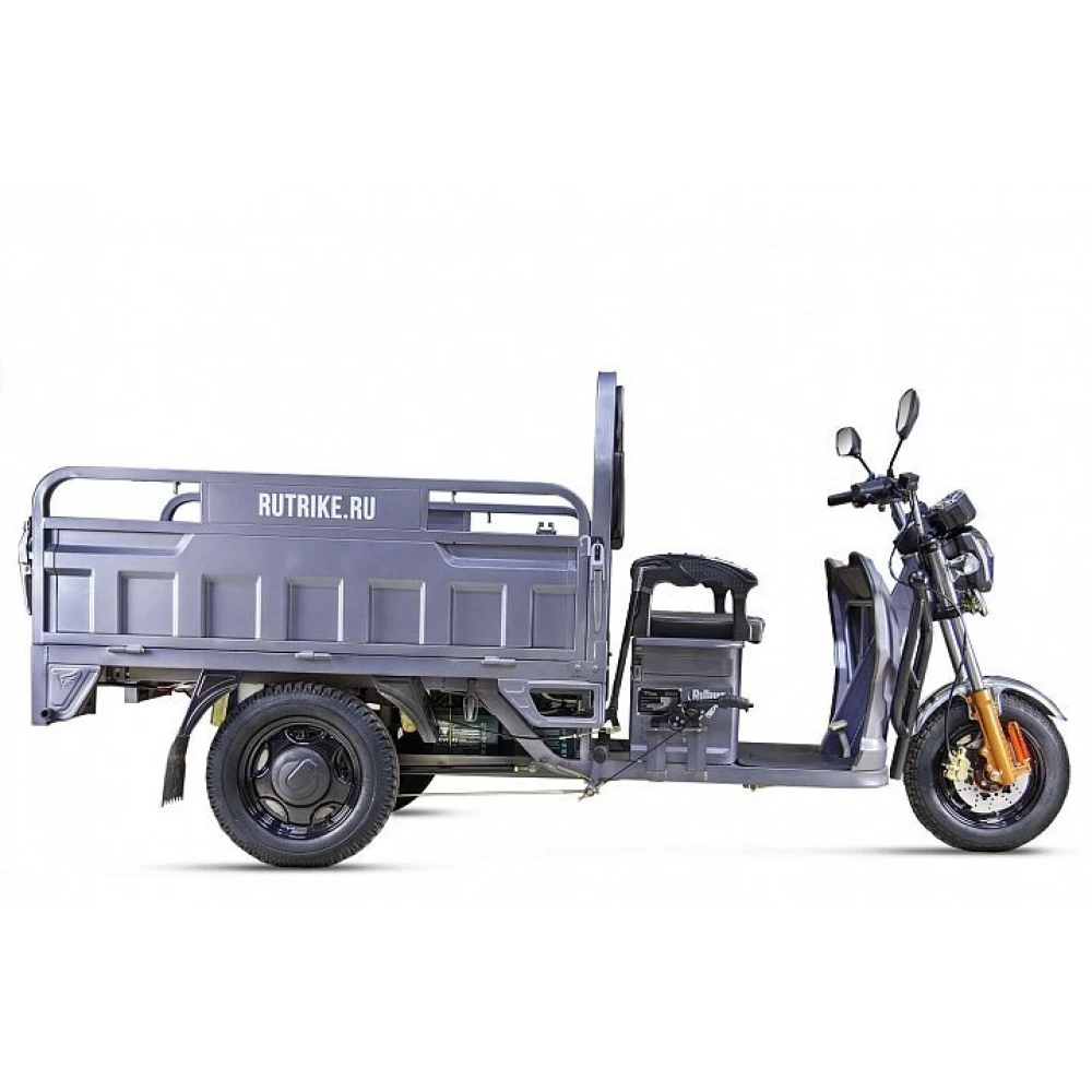 Грузовой электротрицикл Rutrike Дукат 1500 60 В 1000 Вт серый – лидер продаж сезона 2021. Востребована коммерсантами и предприятиями, специализирующимися на турбизнесе и развлечении, ведущими сельское хозяйства и проживающими в частном секторе. Вместительный кузов размерами 2900 x 1110 x 1355 оснащен откидывающимися бортами, которые важны при выполнении погрузочно-разгрузочных работ.