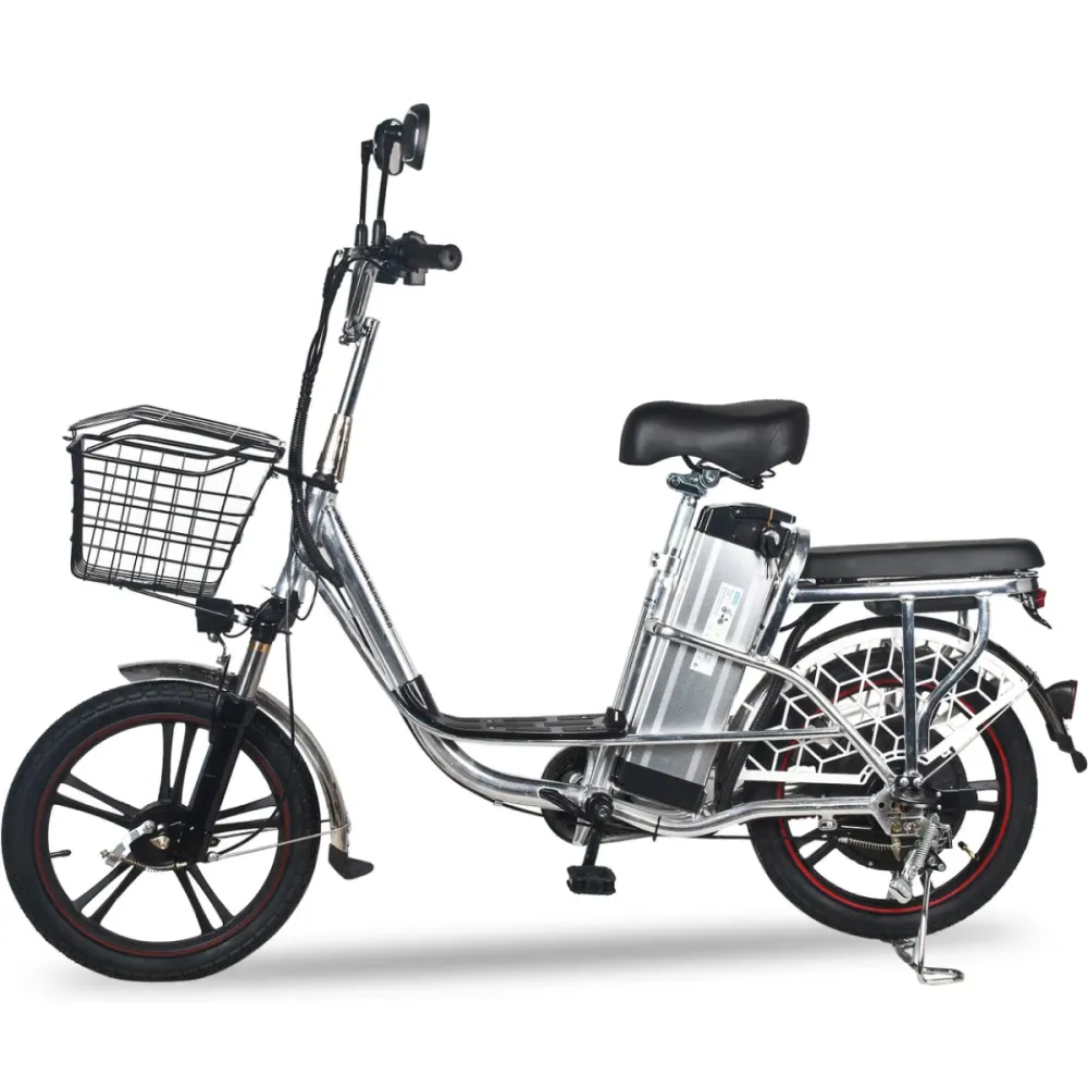 Техника оснащена фирменным двигателем мощностью 500 Вт. Увеличение скоростных характеристик до 50 км/час и повышение пробега возможно благодаря переходу на педальным режим. Широкие внедорожные шины рассчитаны для лучшего сцепления с дорожной поверхностью и движения по трассе с любым покрытием. Усиленная алюминиевая рама обеспечивает максимальную нагрузку 140 кг. Вместительная корзина на руле и усиленный багажник позволяют свободно перевозить личные вещи и покупки.